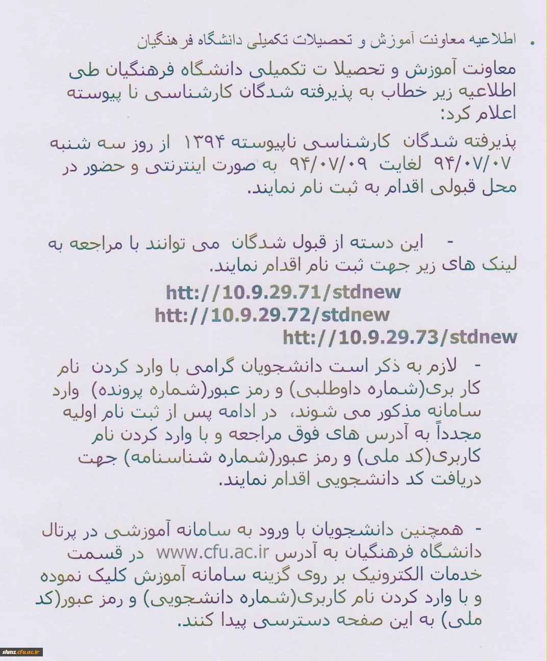امتیاز دهید : اطلاعیه چگونگی ثبت نام قبول شدگان کارشناسی نا پیوسته 94 2 چهارشنبه 8 مهر 1394 ساعت 11:21