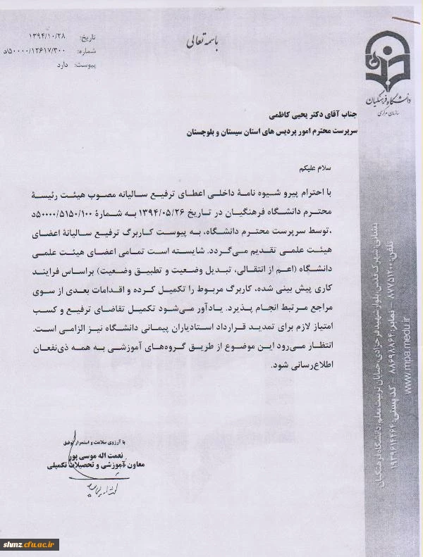 شیوه نامه داخلی اعطای ترفیع سالیانه 2