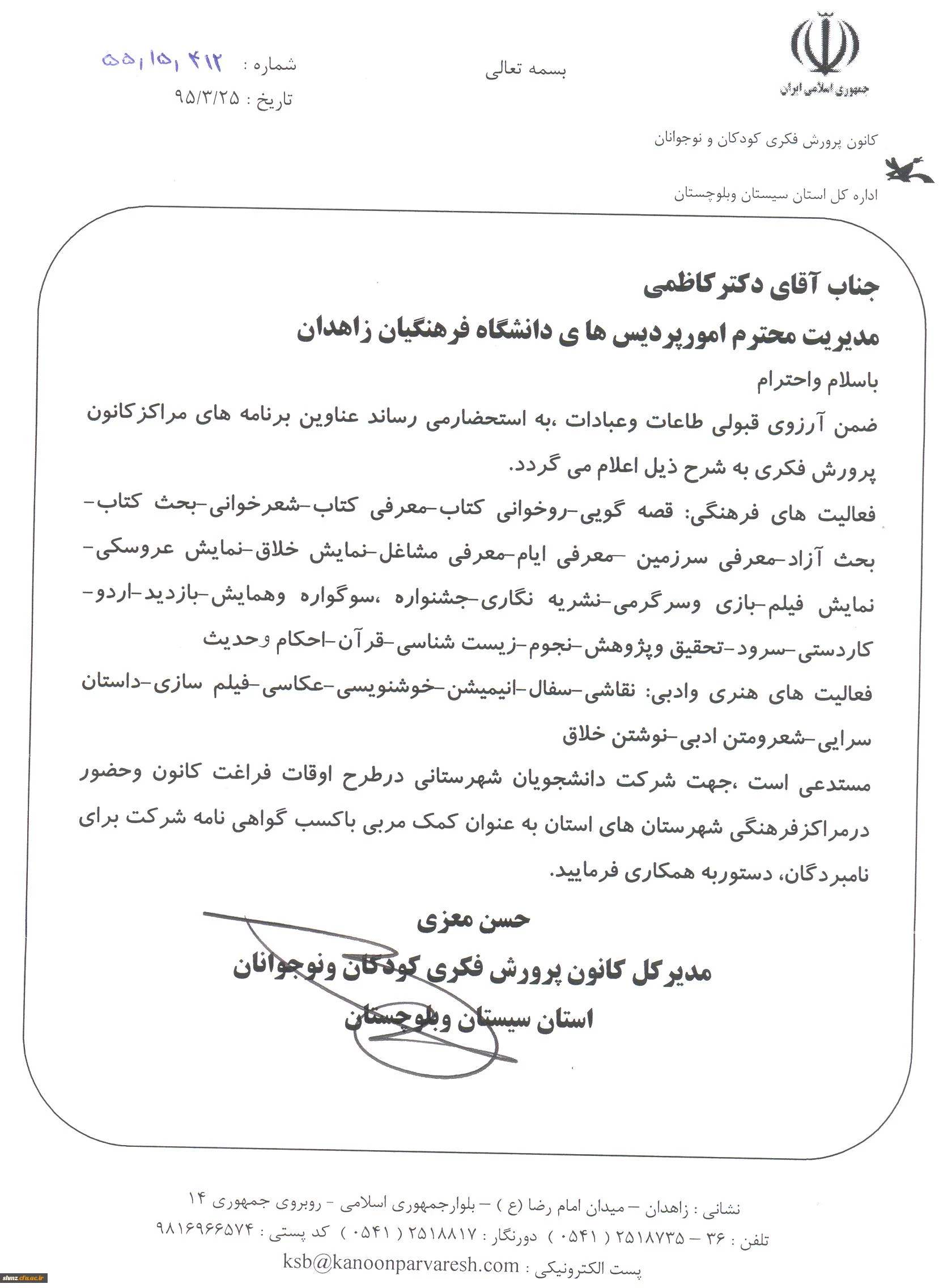 تفاهم نامه دانشگاه فرهنگیان و کانون پرورش فکری کودکان و نوجوانان استان سیستان و بلوچستان 2