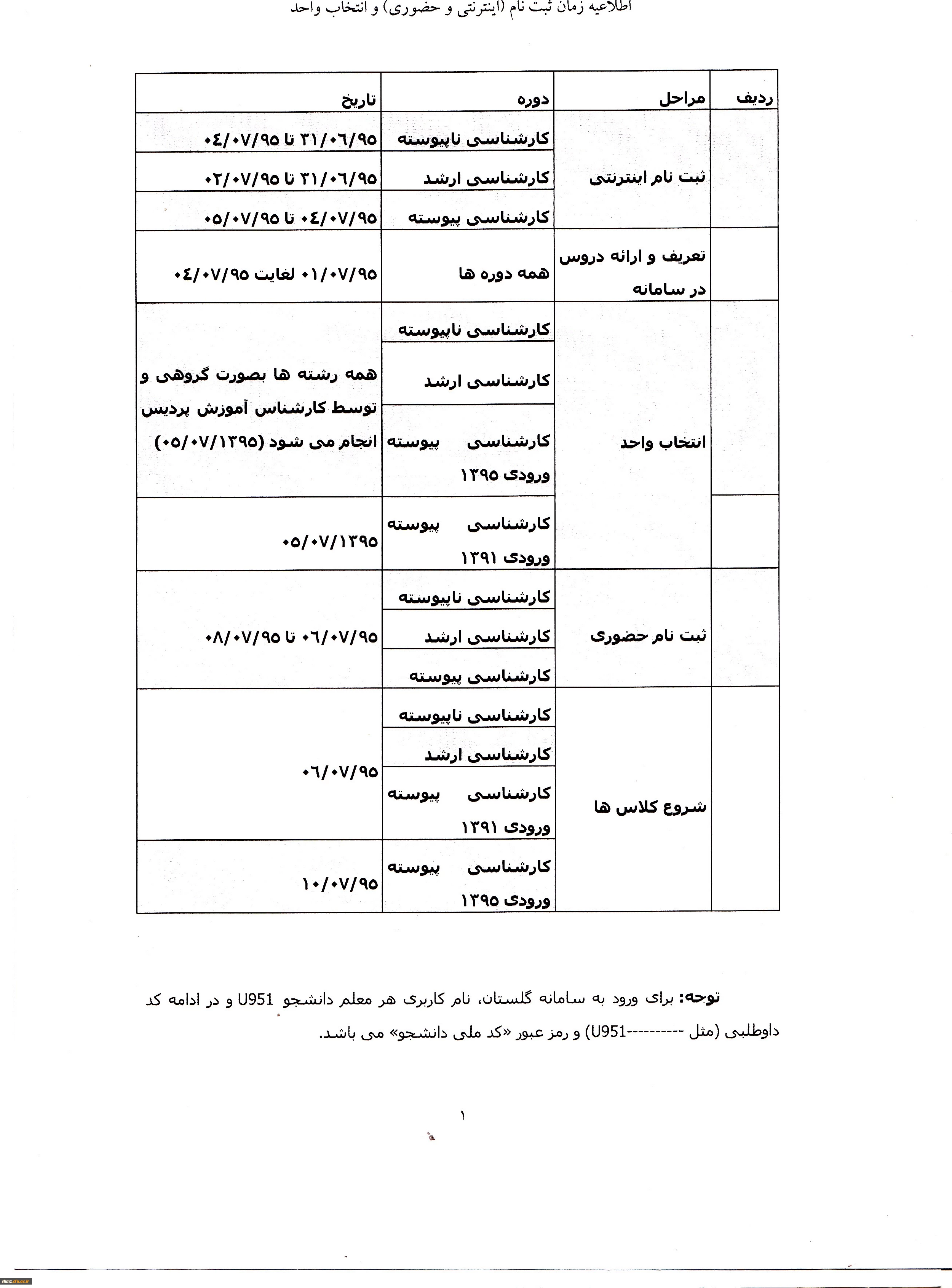 اطلاعیه زمان ثبت نام( اینترنتی و حضوری) و انتخاب واحد 2
