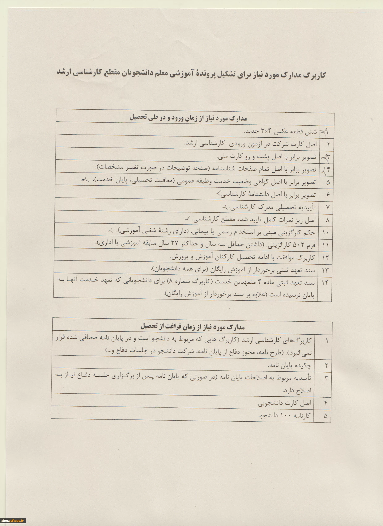 مدارک مورد نیاز جهت ثبت نام دانشجویان  مقطع کارشناسی ارشد 2