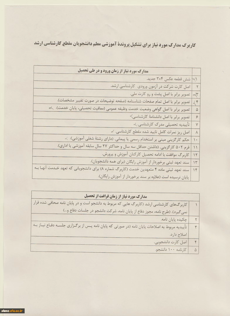مدارک مورد نیاز جهت ثبت نام دانشجویان  مقطع کارشناسی ارشد 2